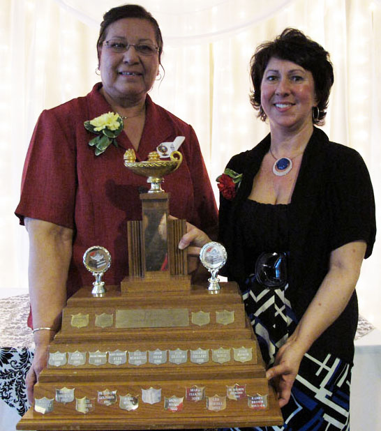 BELLEVILLE, ON (03/05/11) Dorothy Lazore(left) and Sherry Procunier are awarded the Sir Mackenzie Bowell Award Tuesday afternoon for teaching the Mohawk language to childern and adults in their community. Photo by Steph Croiser