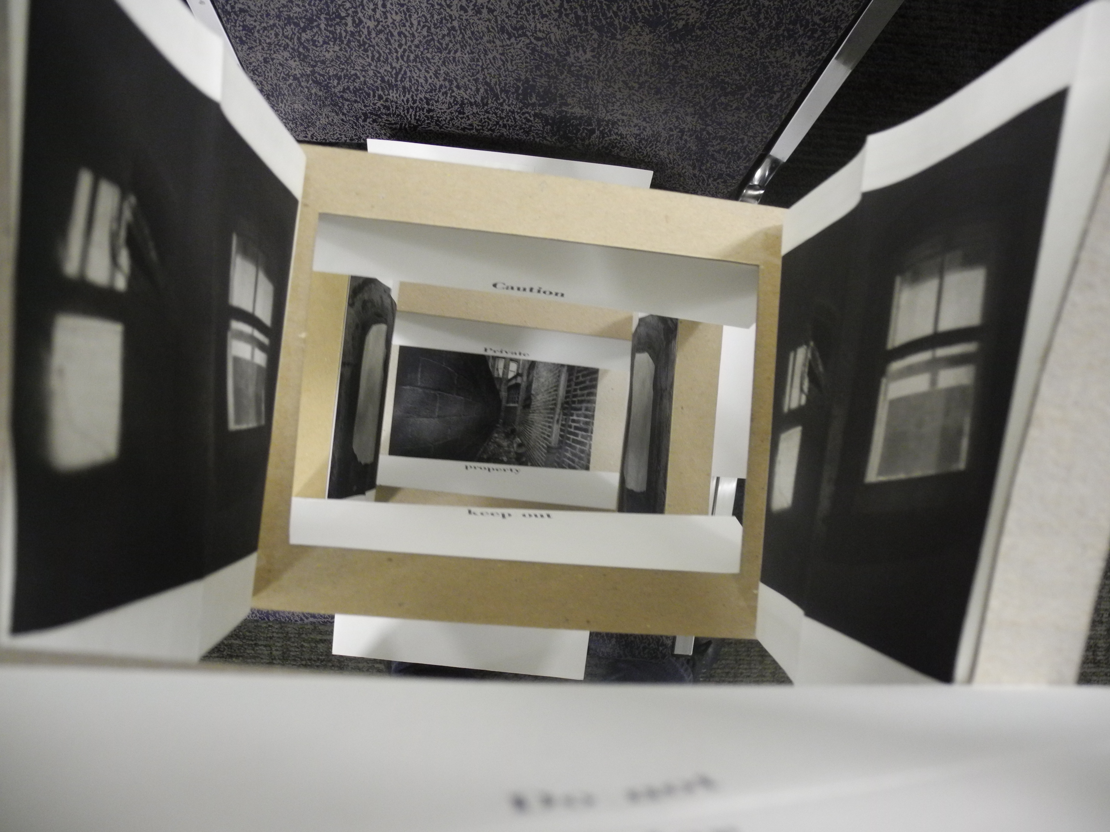 The books she brought for the audience were varied. Many folded out in numerous directions to display a collection of images. Another had an accordion shape that viewers would peer into in order to see the piece.