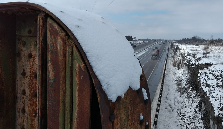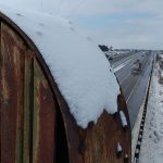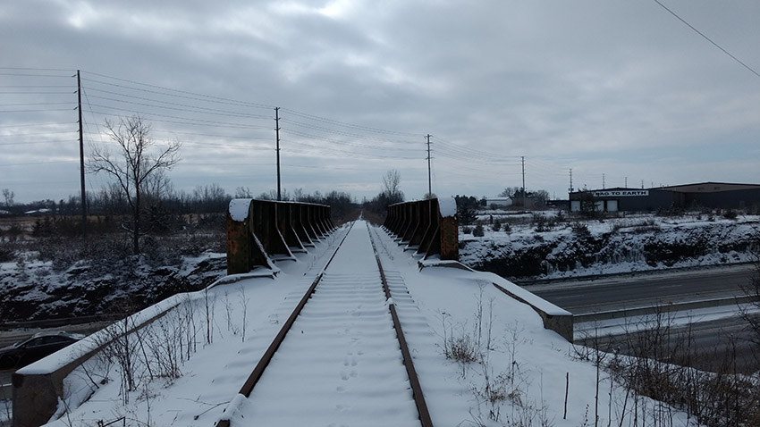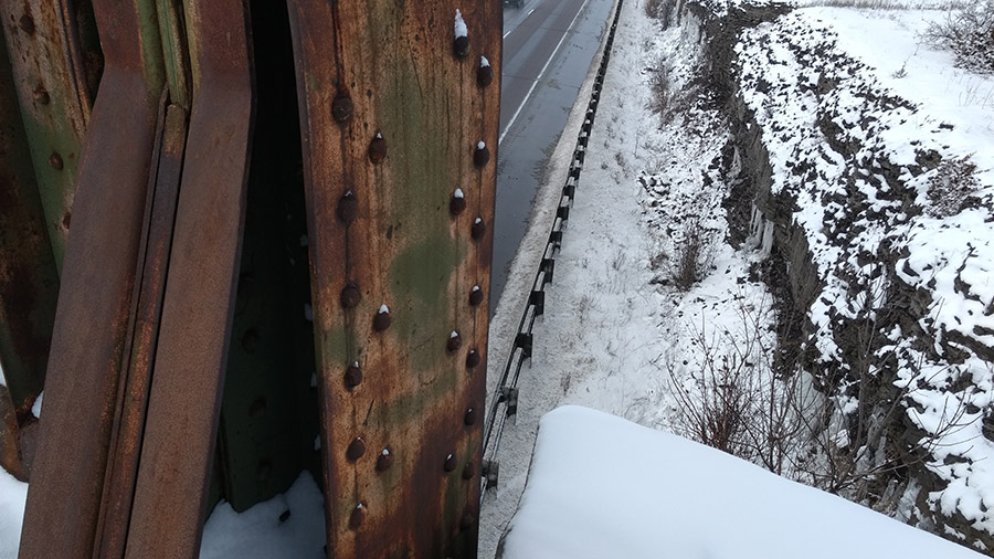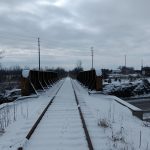 When you look at the bridge it’s fairly clear that it has been a long while since any train has rolled across the tracks. The old steel and wood of the tracks are overgrown and snow-covered, and hardly visible. The bridge is still accessible to pedestrians, however.