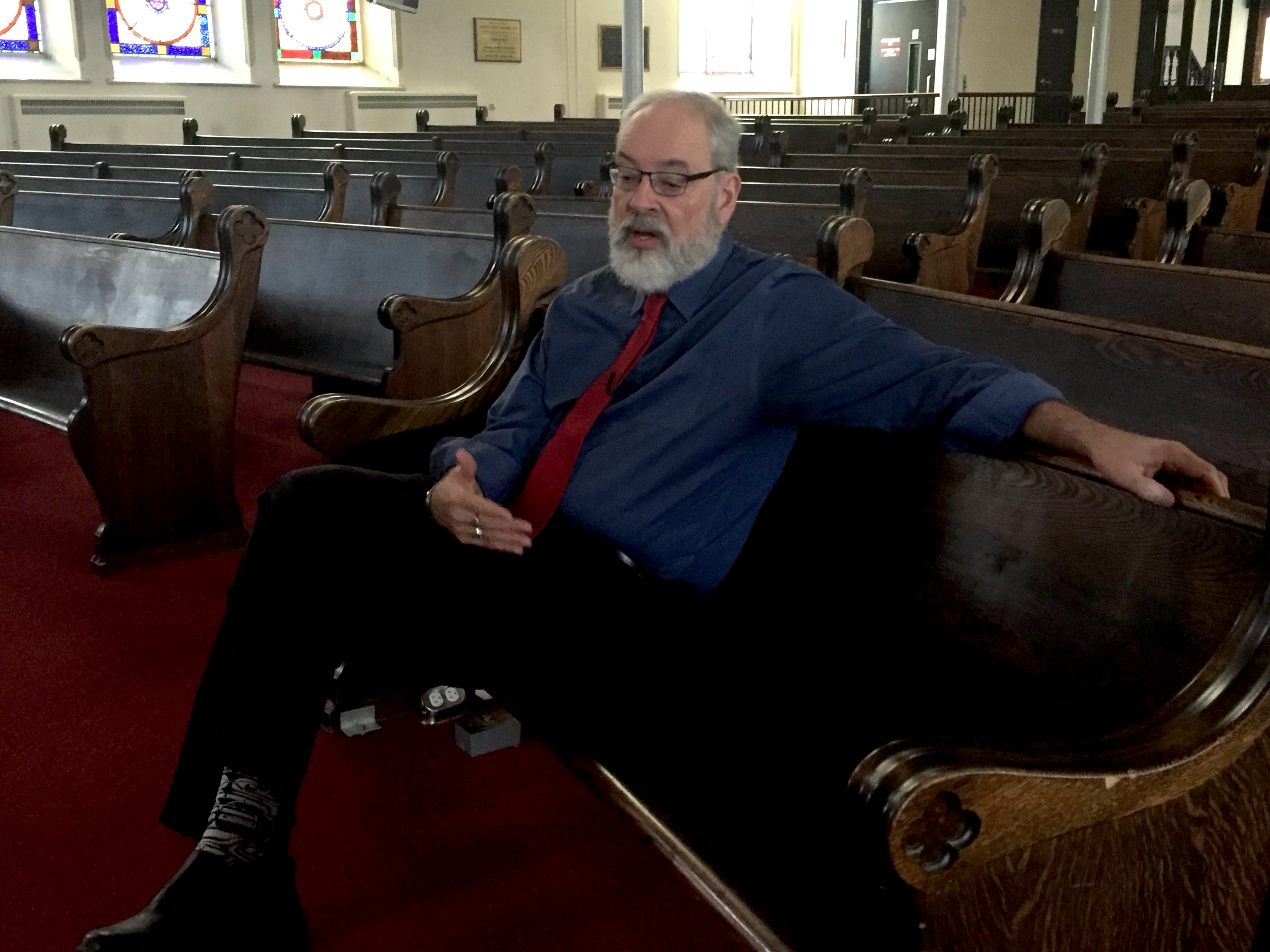 Rev. David Mundy, the lead minister at Bridge Street United Church, talks about his life as a minister. Photo by Alana Pickrell, QNet News