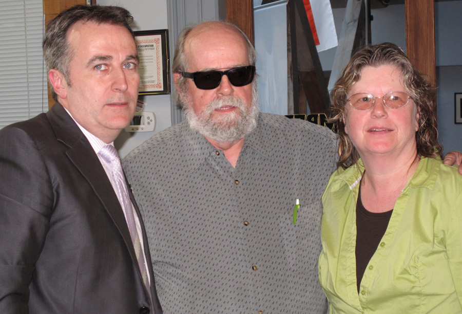 Mayor Neil Ellis stand with John and Evelyn Thibault after giving them thank-you hugs at Belleville council Monday night. The Thibaults donated $50,000 for a state of the art scoreboard for Mary-Anne Sills Park in Belleville. Photo by Jennifer Bowman