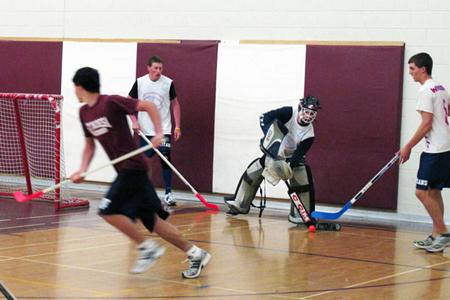 Students at St. Theresa Catholic Secondary School play ball hockey as part of the intramural program set up by the school. Photo by Steph Crosier