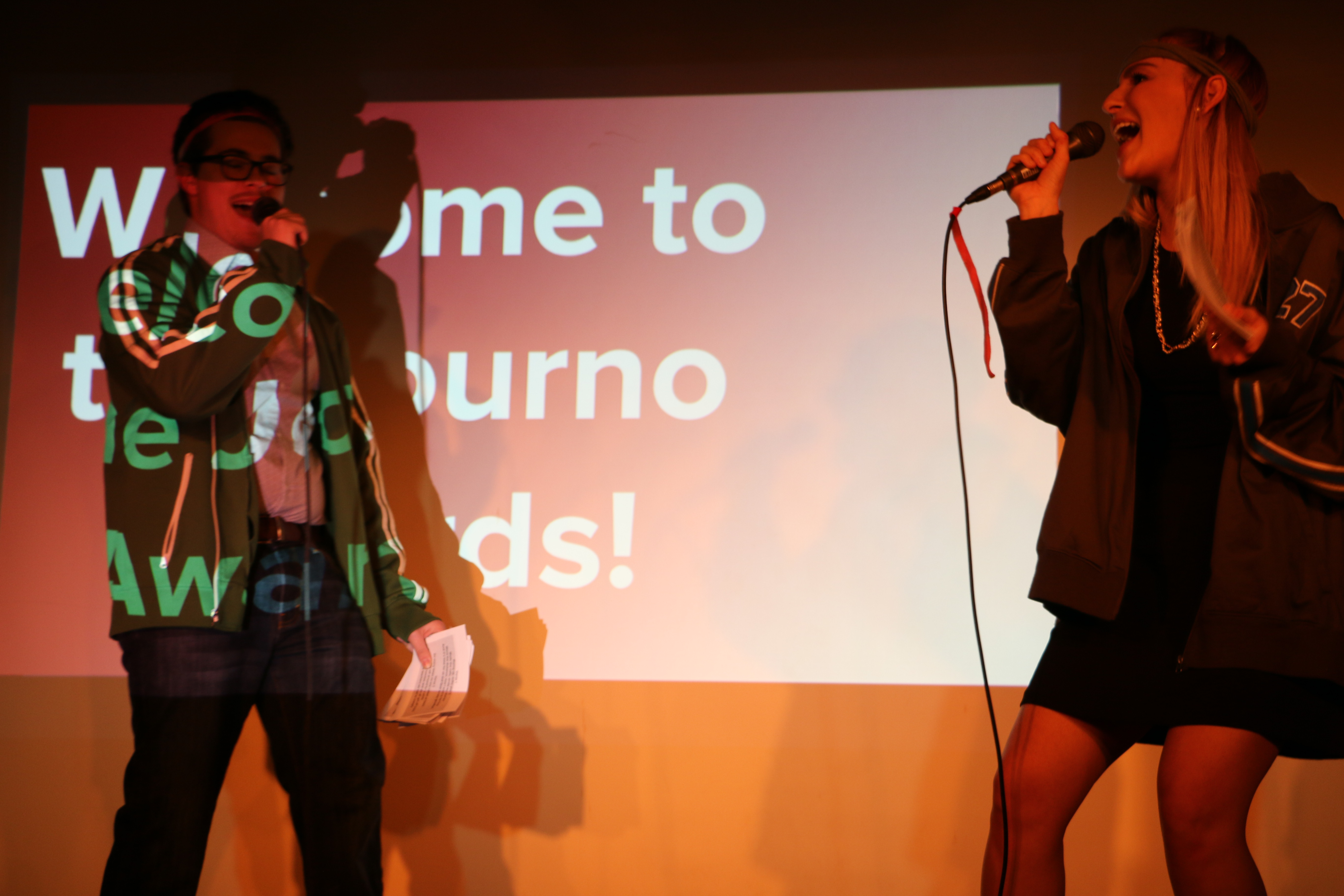 Hosts Meaghan Bury and Nick Ogden kept the crowd of parents, faculty and community members entertained throughout the evening.