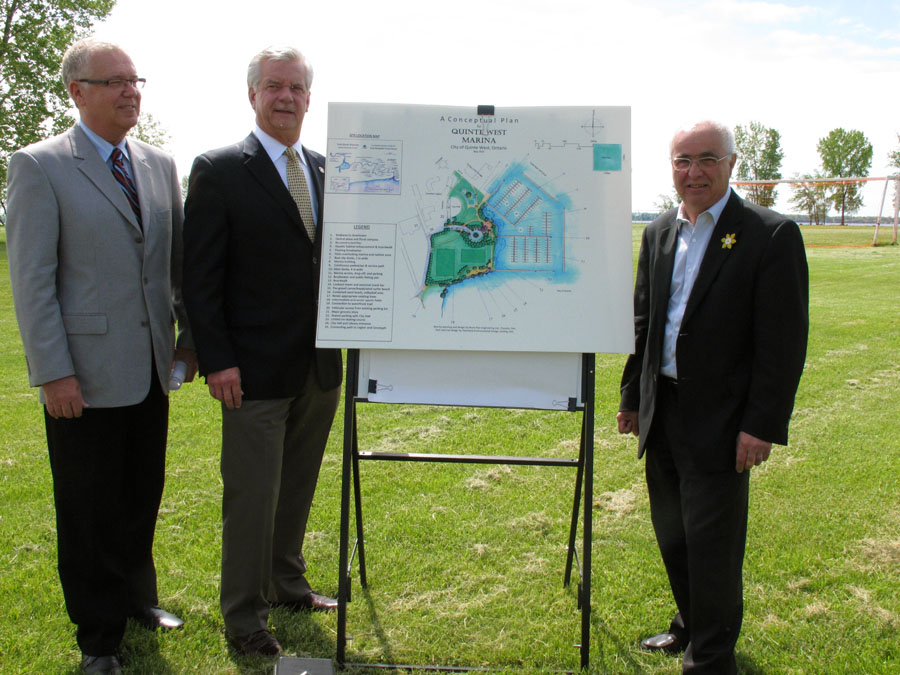 TRENTON, ON. (25/05/2011) MPP Lou Rinaldi annouces the provinical government will contribute $4 million to the city of Quinte West's marina plans. (Left to Right; MPP Rick Johnson, Mayor John Williams, MPP Lou Rinaldi) Photo by Steph Crosier
