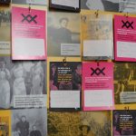 The colour scheme of the exhibit is shown in bright colours. The gold is used in the exhibit as a symbol for the suffragists.