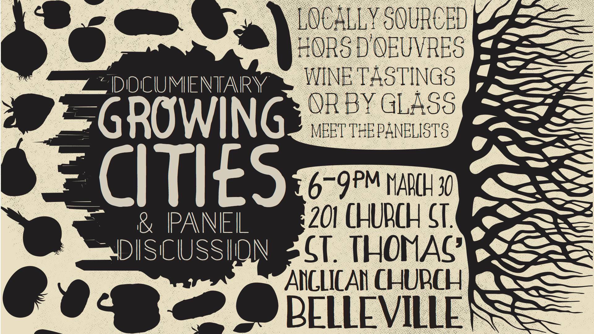 The first half of the event offers a viewing of Dan Susman and Andrew Monbouquette’s documentary, Growing Cities. The second half will feature a discussion led by master gardener and community leader, Kevin Bazkur, along with seven panelist guests talking about food literacy and the rise of urban agriculture in North America.