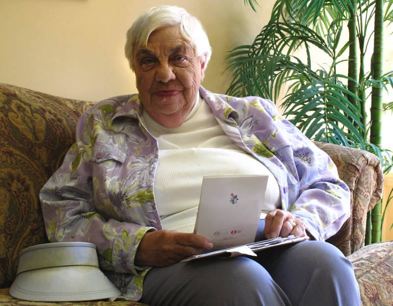 (BELLEVILLE, Ont. 06/03/11) Margaret McGrath holds a birthday card she received in the mail on Friday. Writing cards and letters has always been part of her life and helped her trace her parent's roots. Photo by Jennifer Bowman