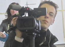 TV New Media Production Student Annaliese Heissler interviews Liberal leadership candidate Justin Trudeau at Loyalist College on Feb. 14, 2013.